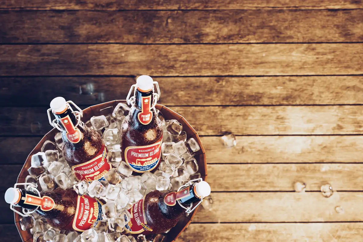 Für das Brauhaus Wädenswil haben wir die Bügelfaschen detailgetreu digital dargestellt. Die flexible Inszenierung der gerenderten Bilder ermöglicht vielfältige Anwendungen: vom Designprozess neuer Etiketten über die Darstellung auf der Webseite bis hin zu auffälligen Werbefotos.