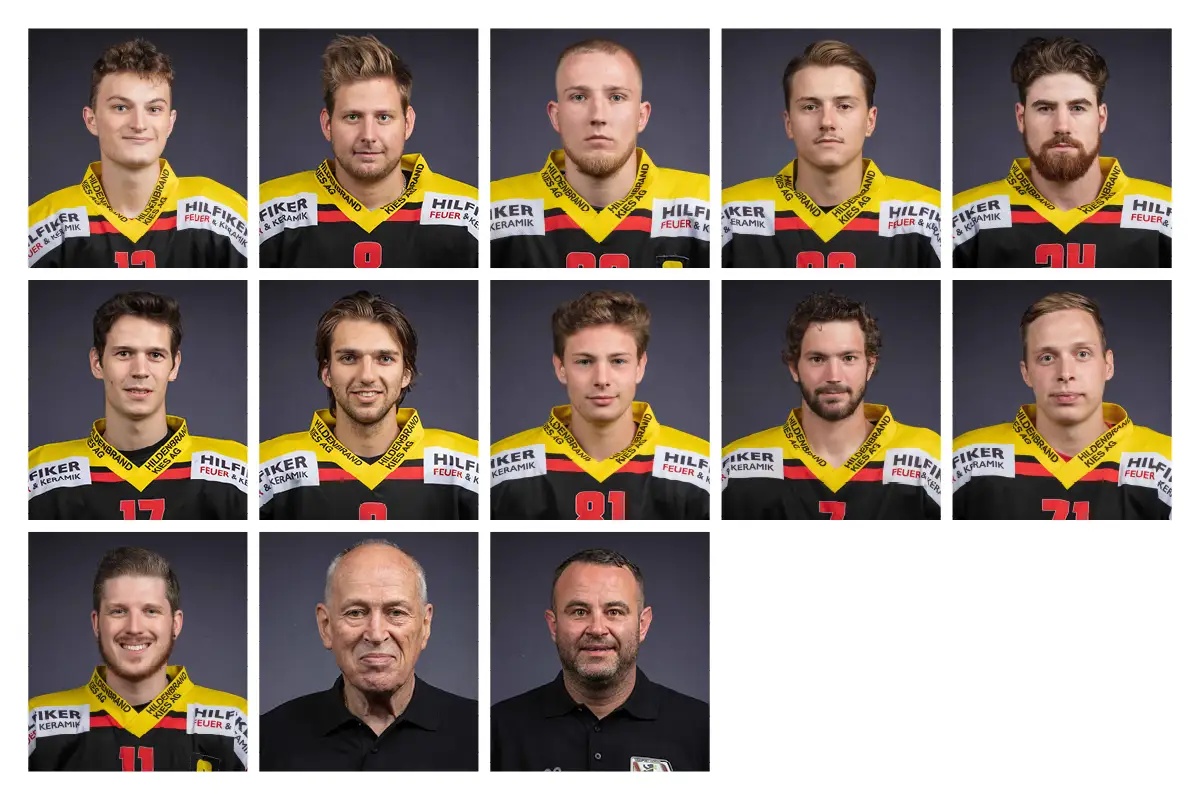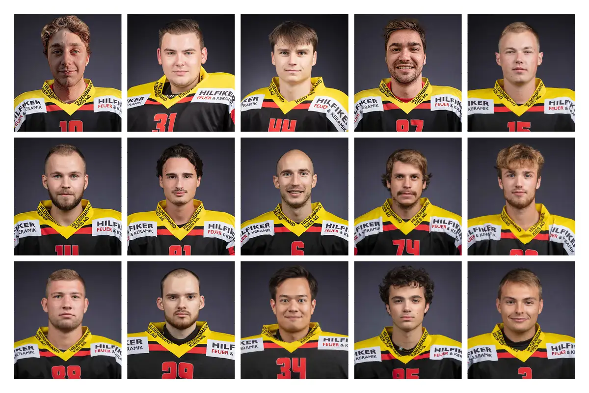 Die einzelnen Spieler werden optimal positioniert, sodass das Gesamtbild für die Teamfotos stimmt. Es werden mehrere Aufnahmen gemacht, zum Beispiel auch mit Lachen und ernstem Gesichtsausdruck. Auf Wunsch können wir auch unterschiedliche Varianten, verschiedene Hintergründe und Kompositionen realisieren.
